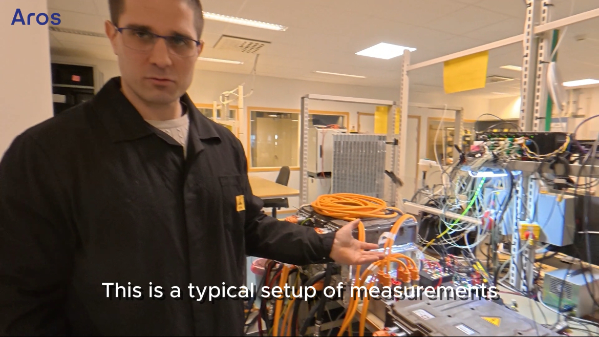 This is Aros’ electric motor development lab, where non–rare-earth motor concepts are tested and characterized. The lab supports full in-house validation, including environmental, vibration, and EMC testing, and current work focuses on the Ecodrive sensorless motor platform.